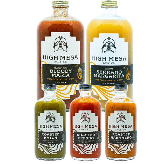 High Mesa Chile Co. is a modern Southwest kitchen specializing in small batch cocktail mixers, hot sauces, braising sauces, mustards, pickled items, and other spicy condiments, all built around the unique flavors of flame roasted chiles.